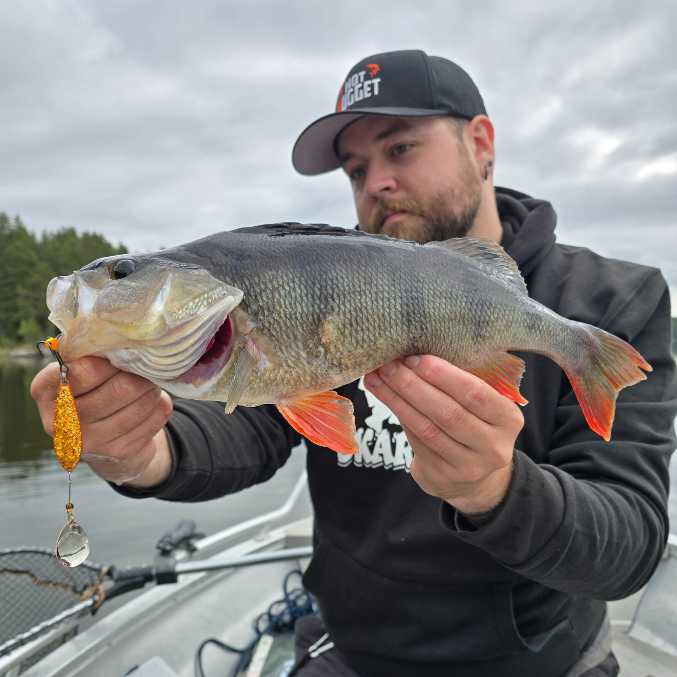 Haft riktigt bra fiske med glitter uv orange. Tvinnar inte linan och går att fiska sakta.